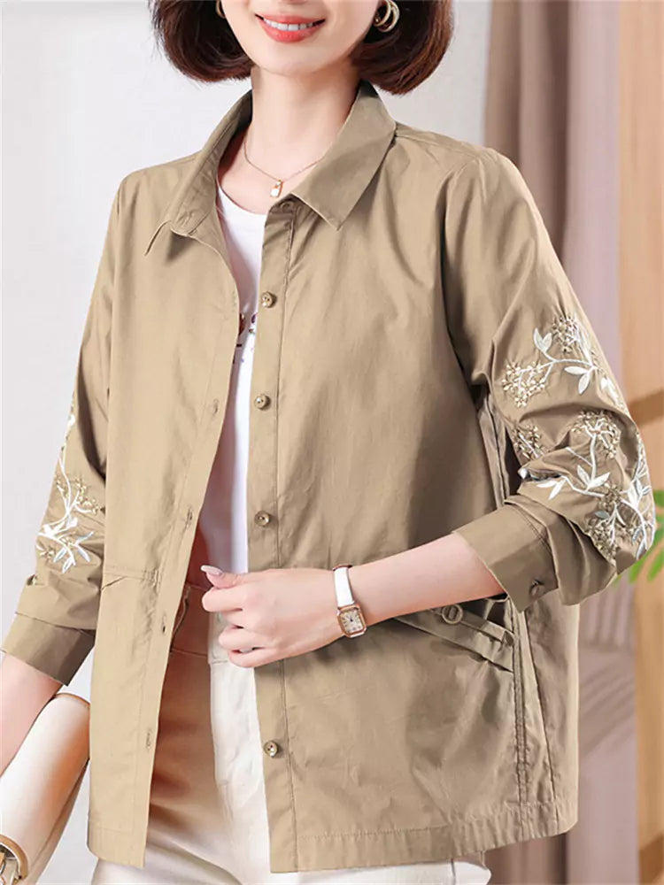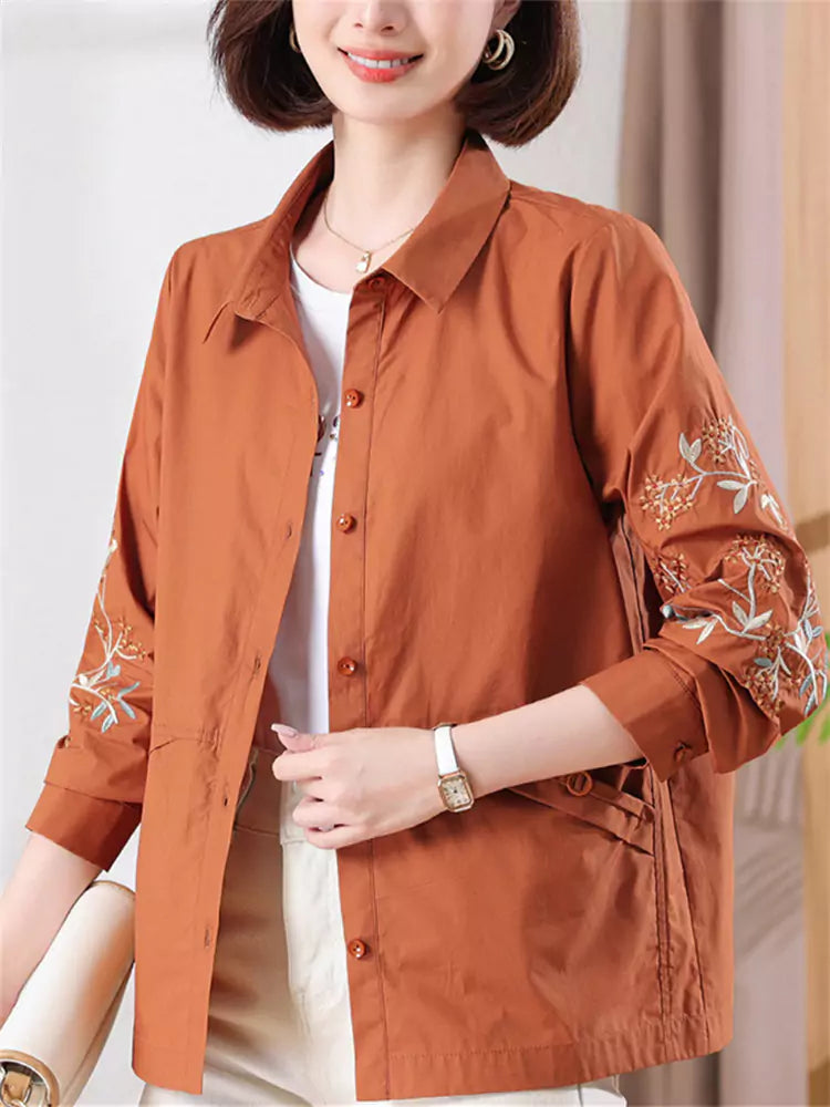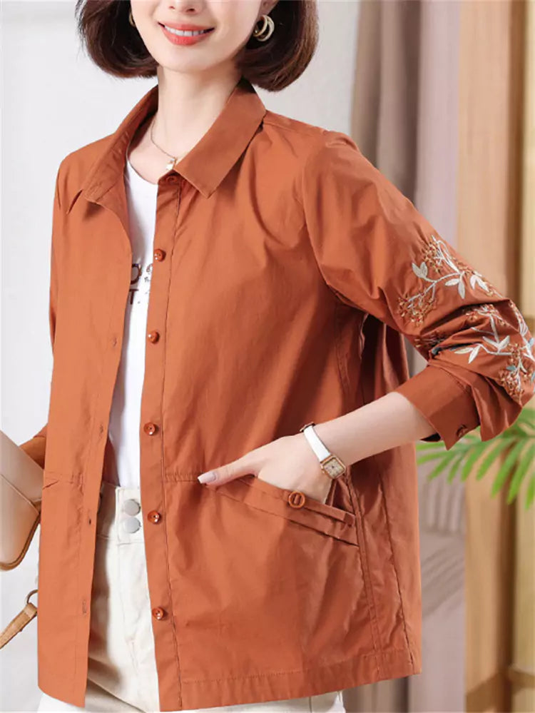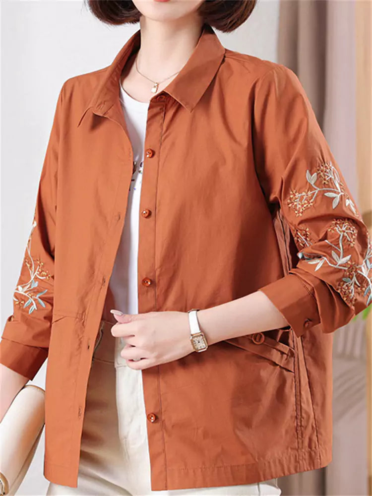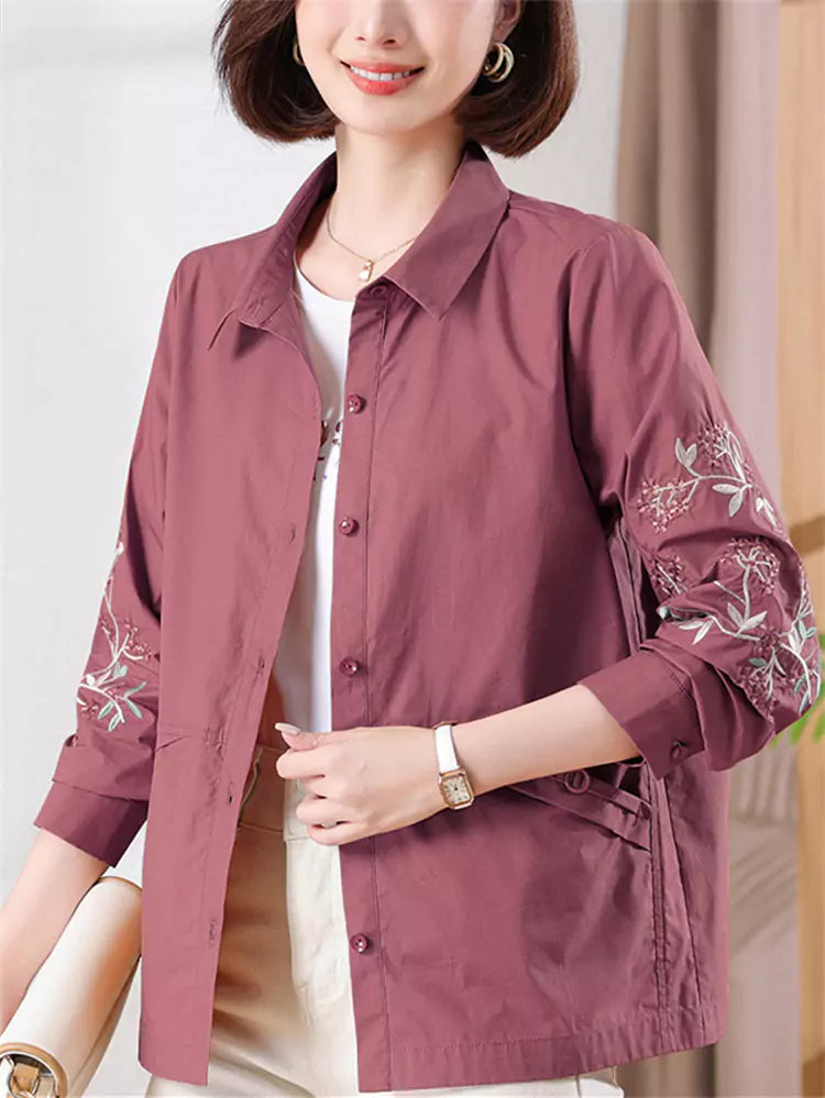 Schickes, besticktes Langarm-Freizeithemd für Damen in großen Größen