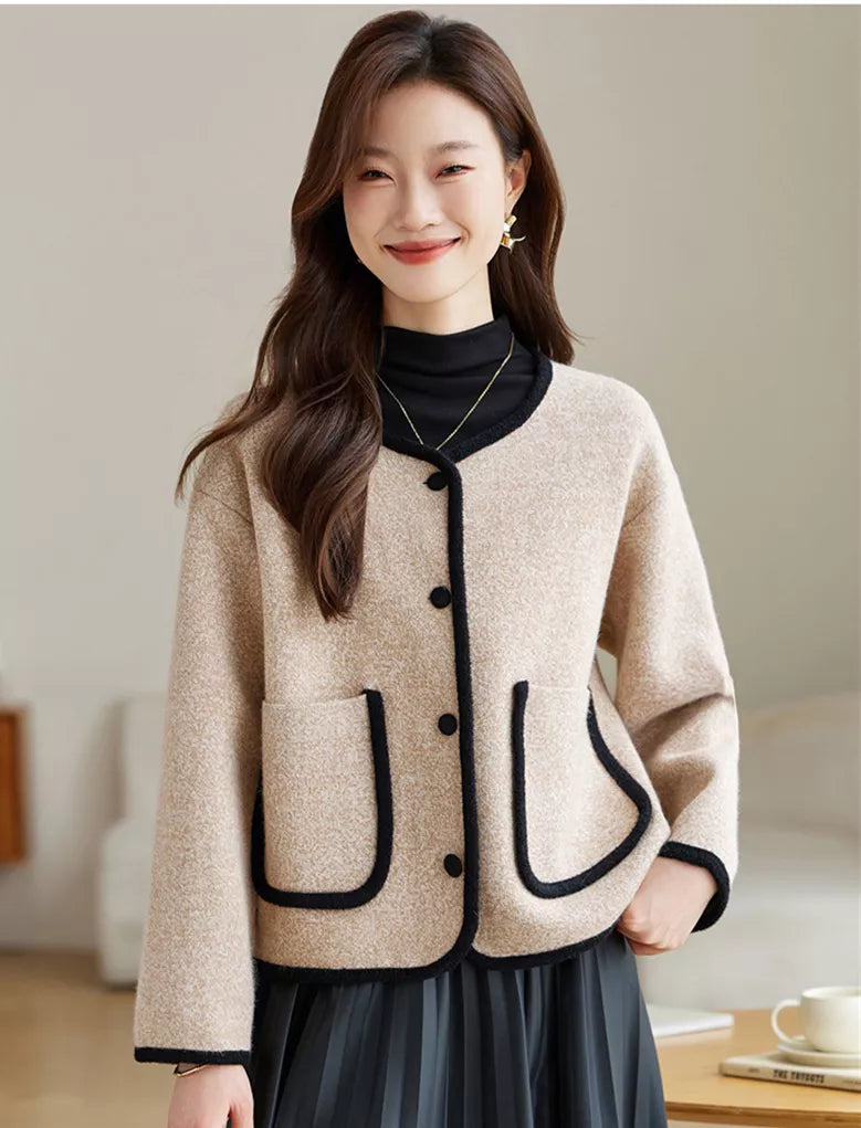 Kurze Wolljacke mit Farbblock-Design für Damen | Locker geschnittene Jacke im Vintage-Stil mit Rundhalsausschnitt vereint stilvollen Retro-Charme mit modernem Tragekomfort. Gefertigt aus einem weichen Wollmischgewebe, besticht diese Jacke durch ihre entspannte Passform, das Farbblock-Design und den eleganten Rundhalsausschnitt. Sie ist vielseitig kombinierbar und eignet sich perfekt zum Tragen über Pullovern, Blusen oder Kleidern. Ideal für lässige Herbst- und Winteroutfits. ❤️