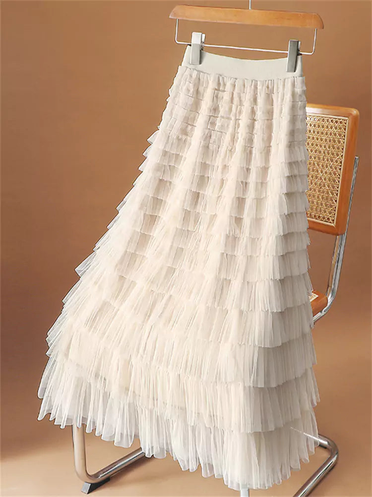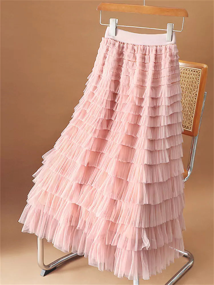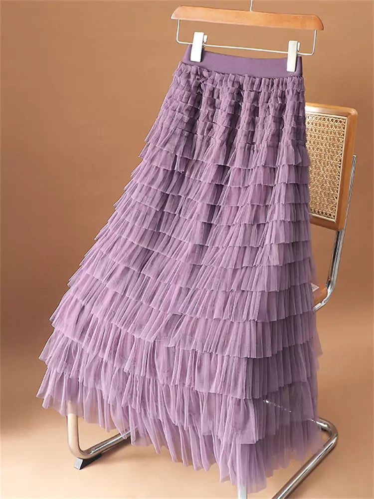 Dieser elegante, hochwertige, mehrlagige A-Linien-Rock aus Mesh für Damen verströmt traumhafte Raffinesse und zarten Charme. Mit seinen fließenden Lagen und der schmeichelhaften A-Linien-Silhouette ist dieser himmlische Rock perfekt für besondere Anlässe oder um Ihrer Alltagsgarderobe einen Hauch von Märchen zu verleihen. ❤️