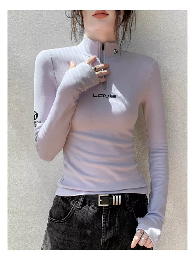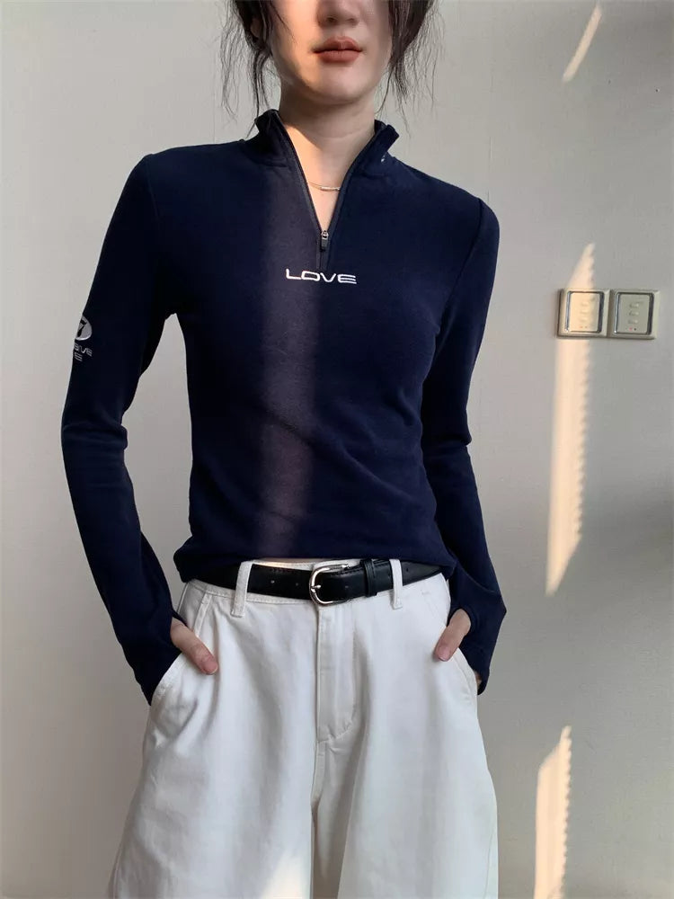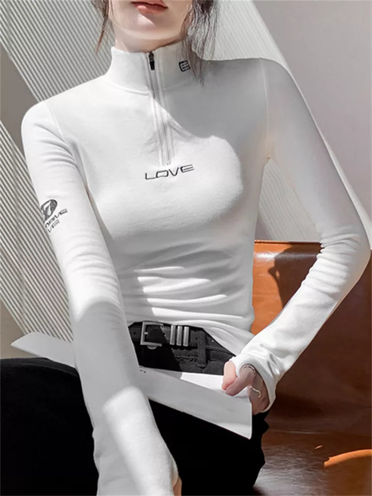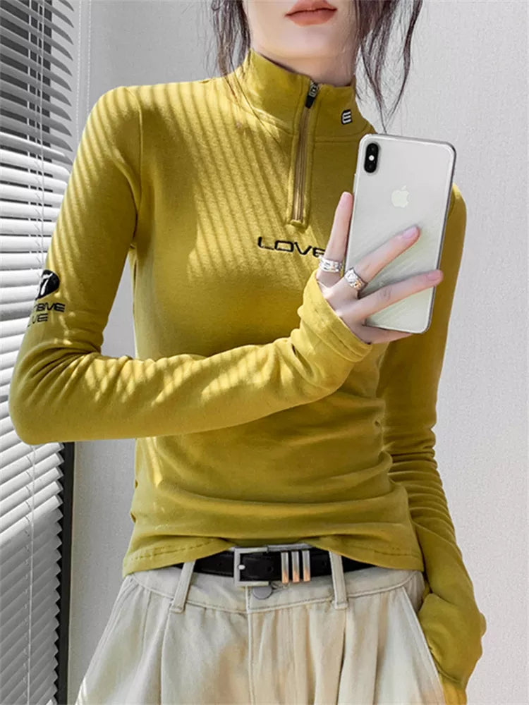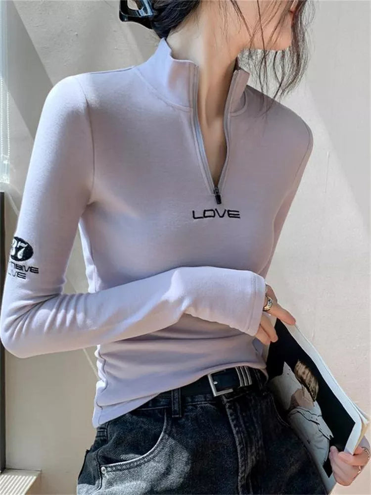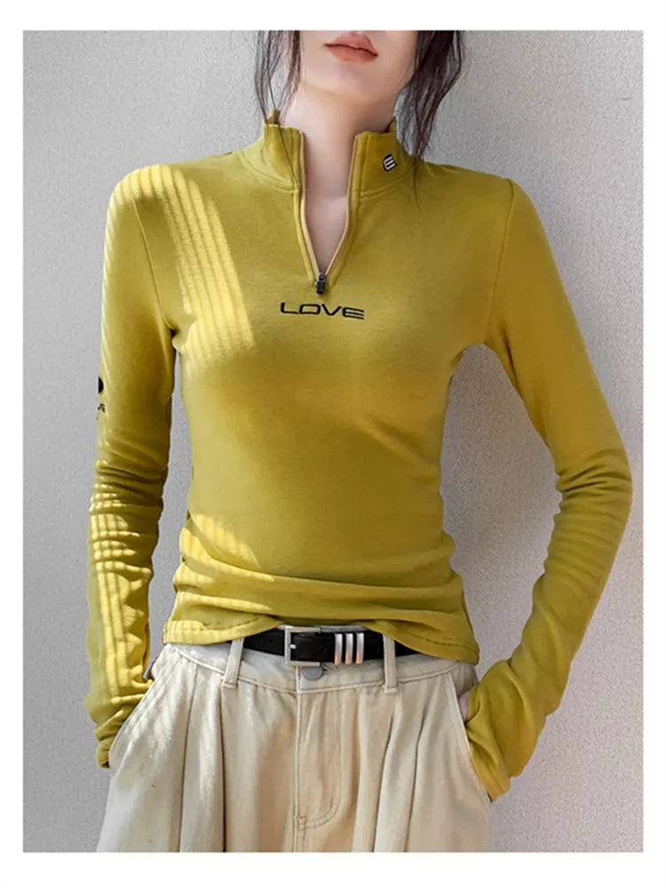 Halbgeschlossenes, langärmeliges, figurbetontes Oberteil mit Reißverschluss für Damen