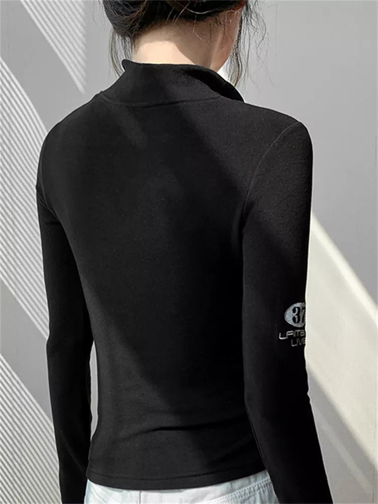 Halb-Rollkragen-Langarmshirt mit Reißverschluss und schmaler Passform für Damen | Stilvolles, figurbetontes Rollkragen-T-Shirt für Lagenlooks und Freizeitkleidung vereint eine elegante Silhouette mit vielseitigen Stylingmöglichkeiten. Der Halb-Rollkragen und die schmale Passform betonen die Figur, während das weiche, dehnbare Material für ganztägigen Tragekomfort sorgt. Perfekt als Lagenlook oder solo getragenes Oberteil für Freizeit- und Büro-Outfits. ❤️