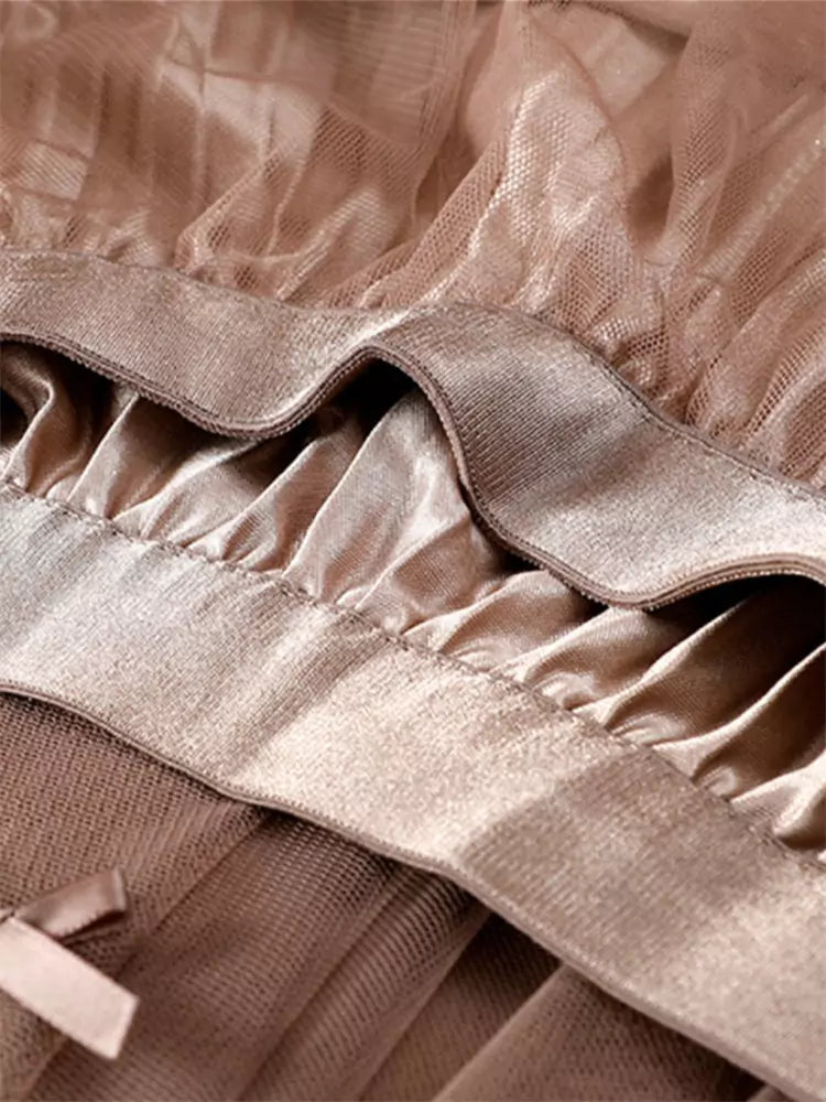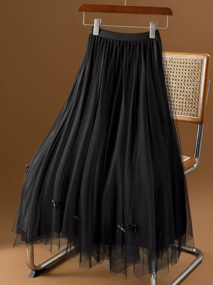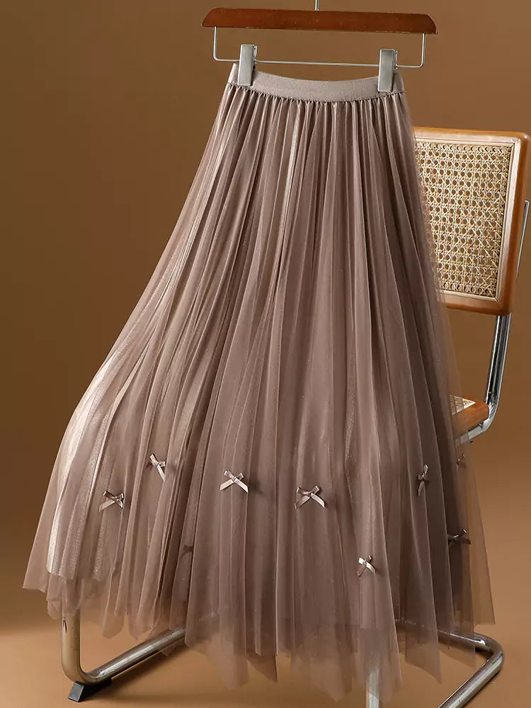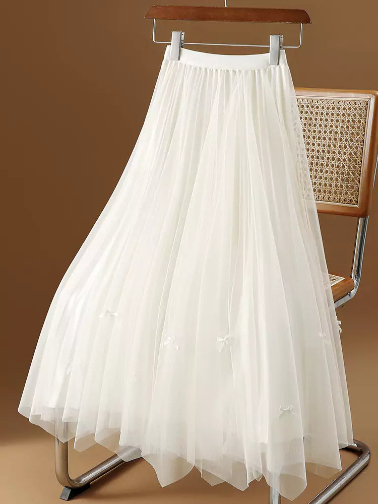 Hochwertiger, beidseitig tragbarer Tüllrock mit Schleife, unregelmäßigem Saum und A-Linien-Schnitt für Damen