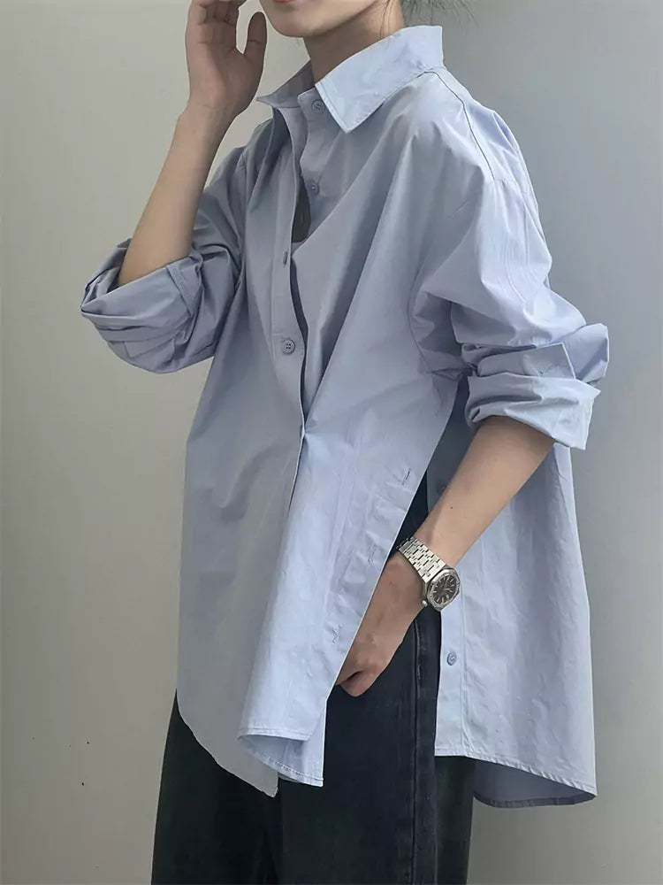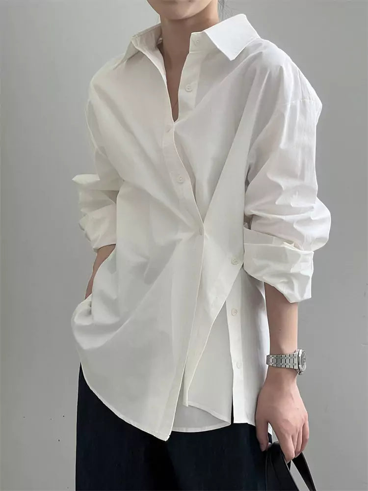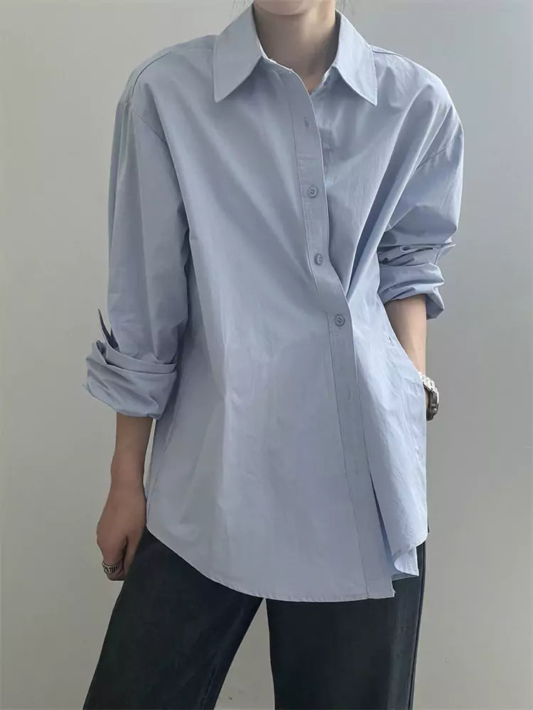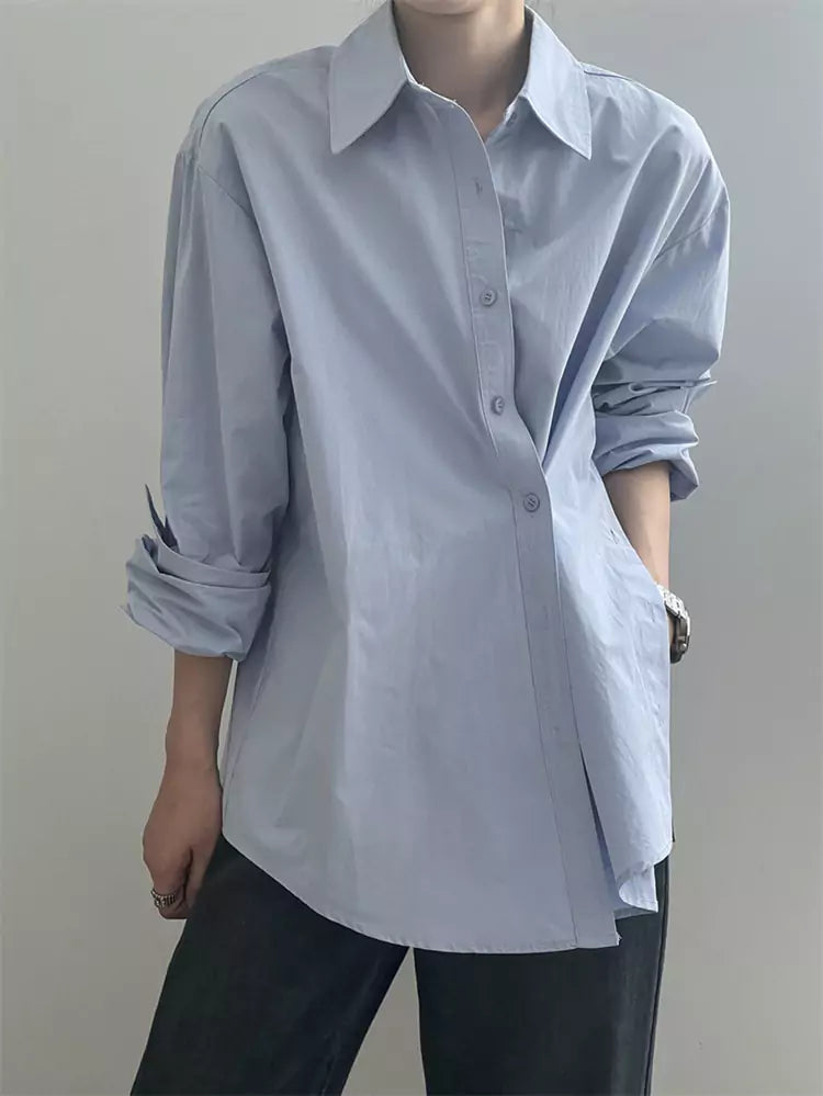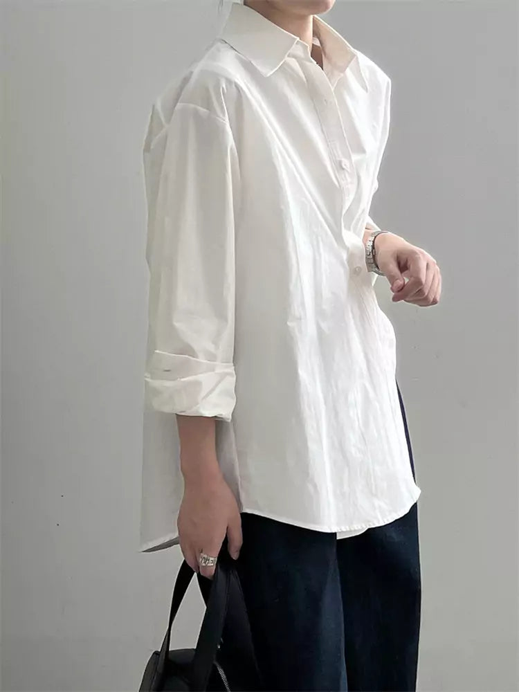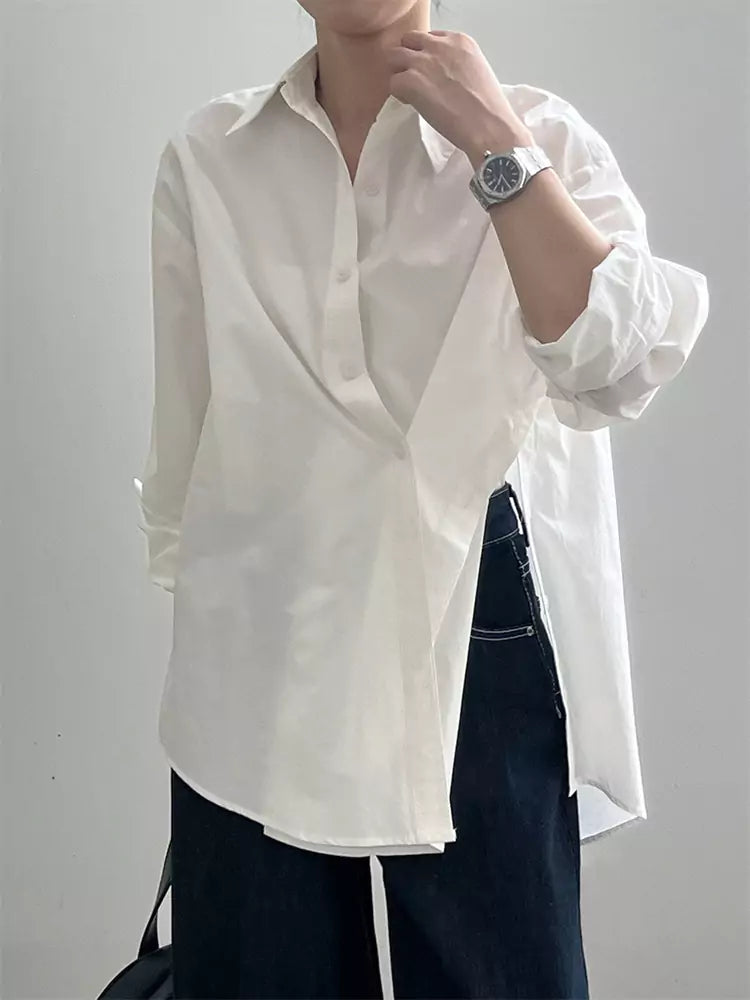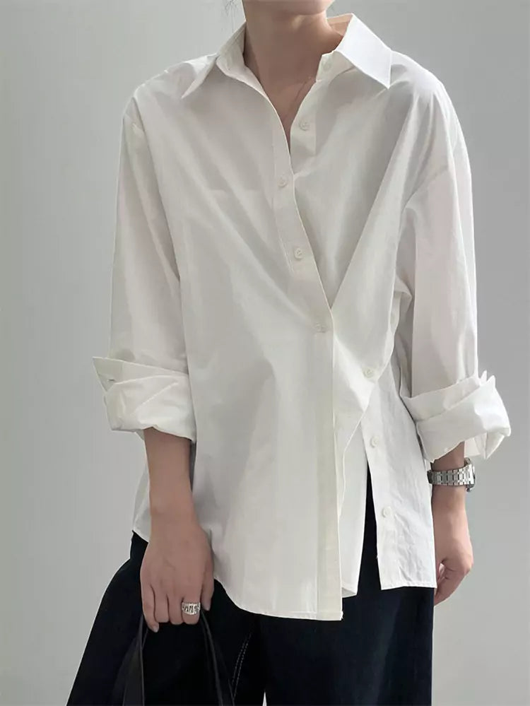 Leichte, asymmetrische Bluse mit Knopfleiste für Damen in Midi-Länge | Minimalistische, hochwertige Bluse in kühlen Farbtönen, schickes und einzigartiges Design. Dieses lässige Top 2025 vereint modernen Minimalismus mit eleganten Details. Mit asymmetrischer Knopfleiste und dezentem Seitenschlitz zaubert diese Bluse in Midi-Länge eine schmeichelhafte Silhouette und einen mühelos eleganten Look. Perfekt für lässig-elegante Outfits, fürs Büro oder zum Kombinieren mit Oberbekleidung. ❤️