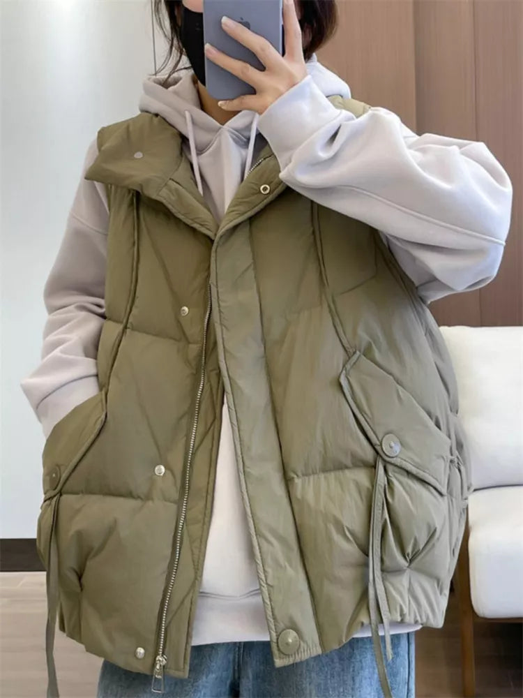 Gesteppte Weste für Damen in lockerer Passform | Ärmellose Steppweste in großen Größen für lässige Lagenlooks . Diese Weste aus weicher, wattierter Baumwolle besticht durch ihre lockere Passform und ihr vielseitiges Design. Sie eignet sich perfekt zum Tragen über Tops, Pullovern oder Blusen in der kühleren Jahreszeit und sorgt für einen lässig-eleganten Look. ❤️
