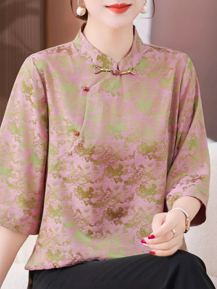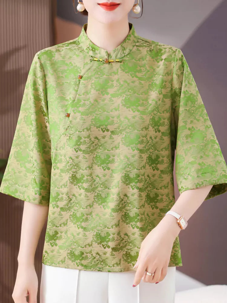 Neues chinesisches Plus-Size-Top aus Maulbeerseide mit Stehkragen und traditionellen Knotenknöpfen