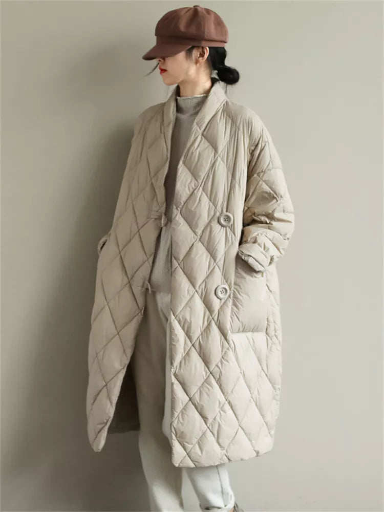 Roter, mittellanger Steppmantel mit Stehkragen für Damen | Lässige, warme Steppjacke aus Baumwolle mit lockerer Passform vereint moderne Schlichtheit mit behaglicher Wärme. Mit elegantem Stehkragen und weicher Steppung bietet dieser mittellange Steppmantel Stil und Komfort für kalte Tage. Die lockere Passform und das leichte Material machen ihn ideal für den Alltag und ermöglichen müheloses Layering in Herbst und Winter. ❤️
