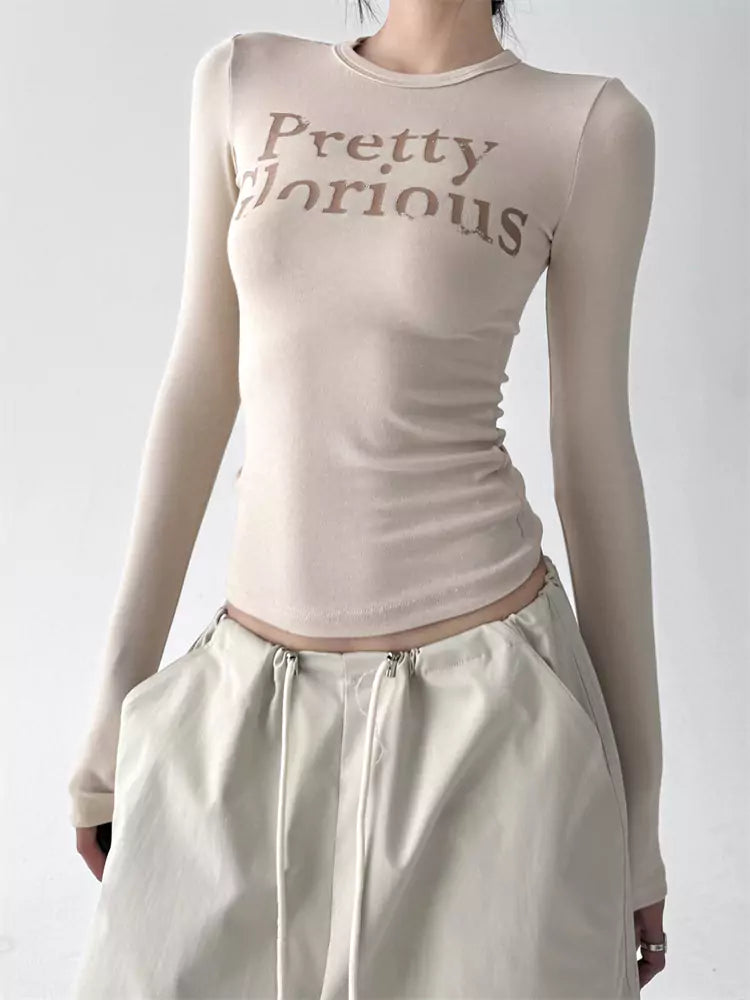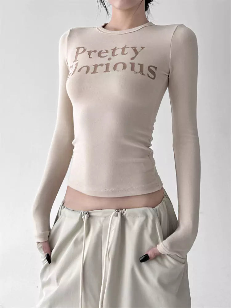 Kurzes, figurbetontes T-Shirt mit Buchstabenprint für Damen | Lässiges Kurzarmtop für den Frühherbst 2025, stylisches Baselayer-Shirt für Frühling und Herbst vereint trendige Streetwear mit figurschmeichelndem Design. Das aus weichem, atmungsaktivem Material gefertigte Cropped-T-Shirt besticht durch auffällige Buchstabenprints und eine schmale Passform. Es eignet sich perfekt zum Layern oder als Solo-Look für lässige oder schicke Outfits. ❤️