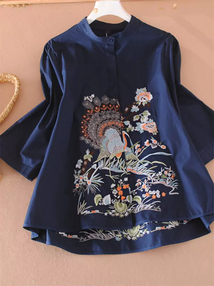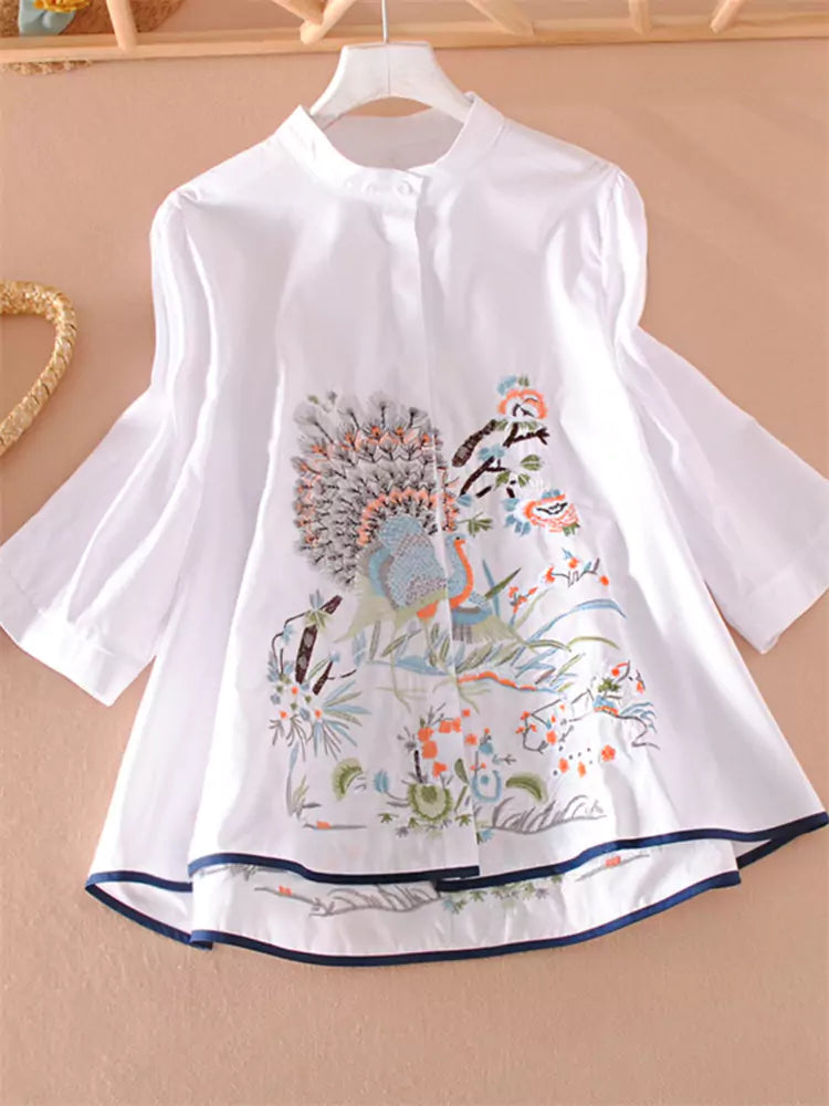 Trendige, bestickte, locker geschnittene Kurzarmbluse mit eleganten Details für Damen