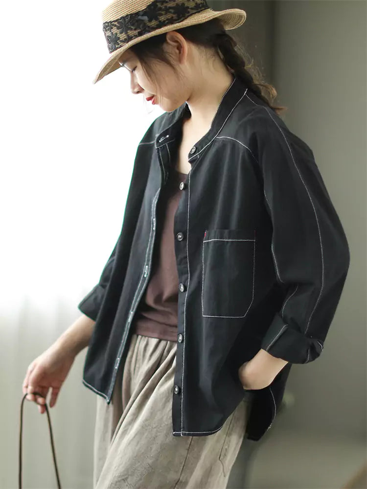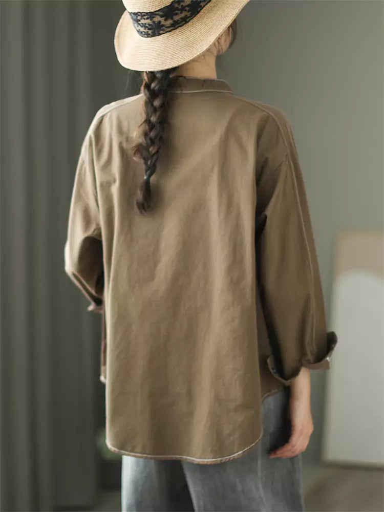 Vintage-Baumwollbluse mit langen Ärmeln für Damen | Lässige Retro-Bluse mit Kontrastnähten und Rundhalsausschnitt vereint atmungsaktiven Tragekomfort mit mühelosem Stil. Die Bluse aus 100 % Baumwolle besticht durch sichtbare Kontrastnähte, die ihr einen dezenten Retro-Touch verleihen. Die entspannte und dennoch schicke Passform schmeichelt verschiedenen Figurtypen. ❤️