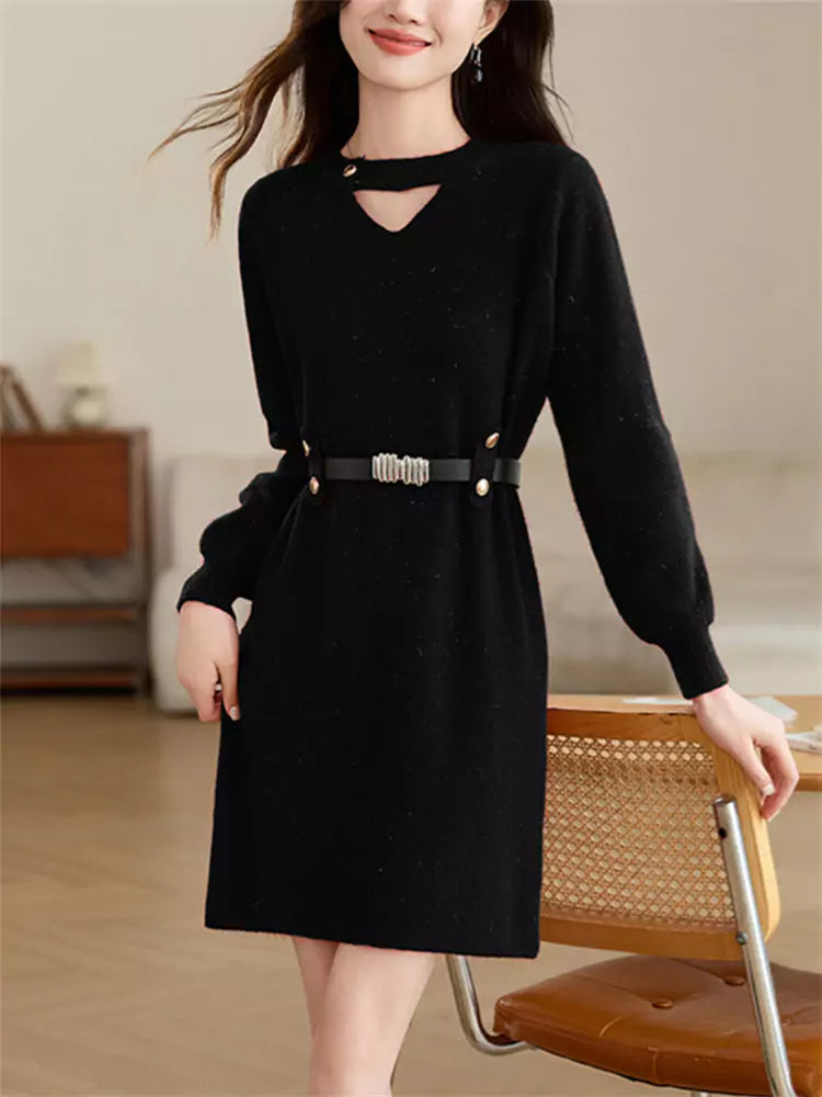 Rotes, hohles Strickkleid für Damen – mittellanger Pullover für Herbst und Winter