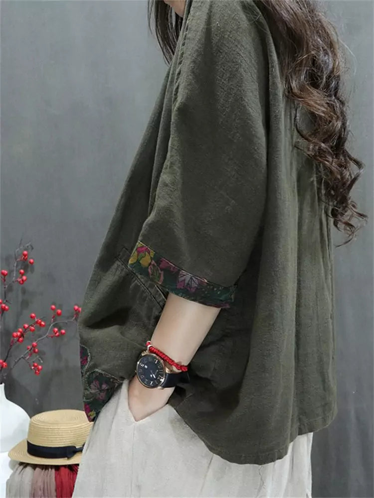 Vintage-Leinenbluse mit Print für Damen | Locker geschnittene, figurformende Bluse mit Knöpfen vereint traditionellen Charme mit modernem Casual-Stil. Gefertigt aus atmungsaktivem Leinen und mit klassischen Knotenknöpfen im chinesischen Stil versehen, bietet diese Bluse eine entspannte Silhouette und betont gleichzeitig die Figur. Perfekt für Teestunden, Freizeitaktivitäten oder als Teil eines saisonalen Lagenlooks – sie vereint Komfort mit raffinierter Vintage-Ästhetik. ❤️