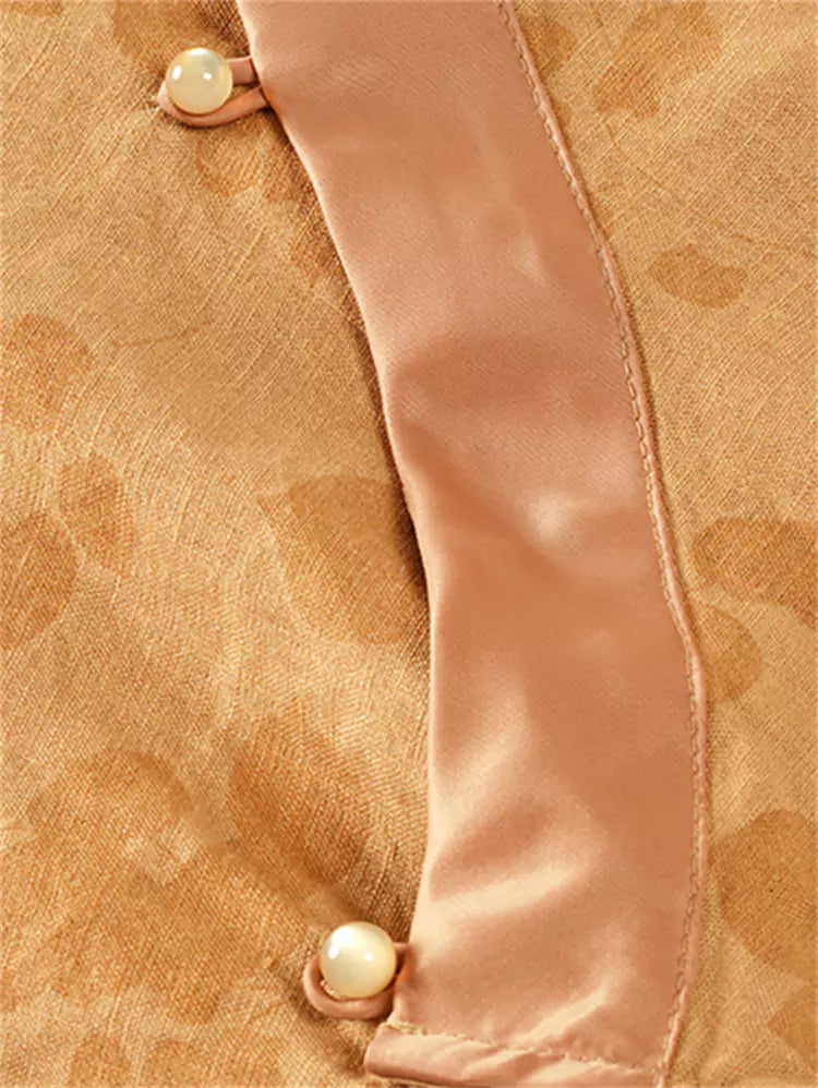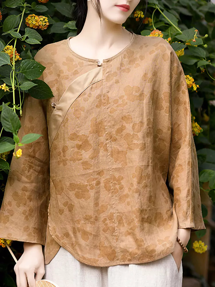 Gelbes Damenhemd im neuen chinesischen Stil aus Leinen mit Kreuzkragen und Froschknöpfen