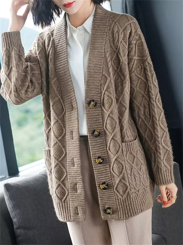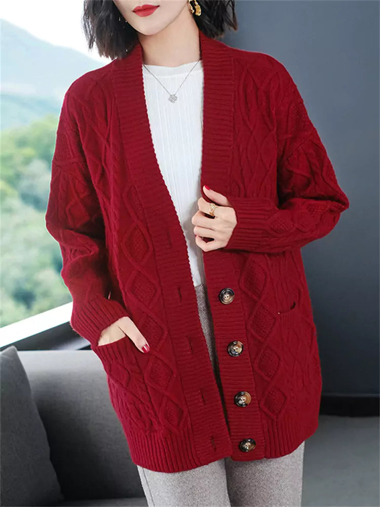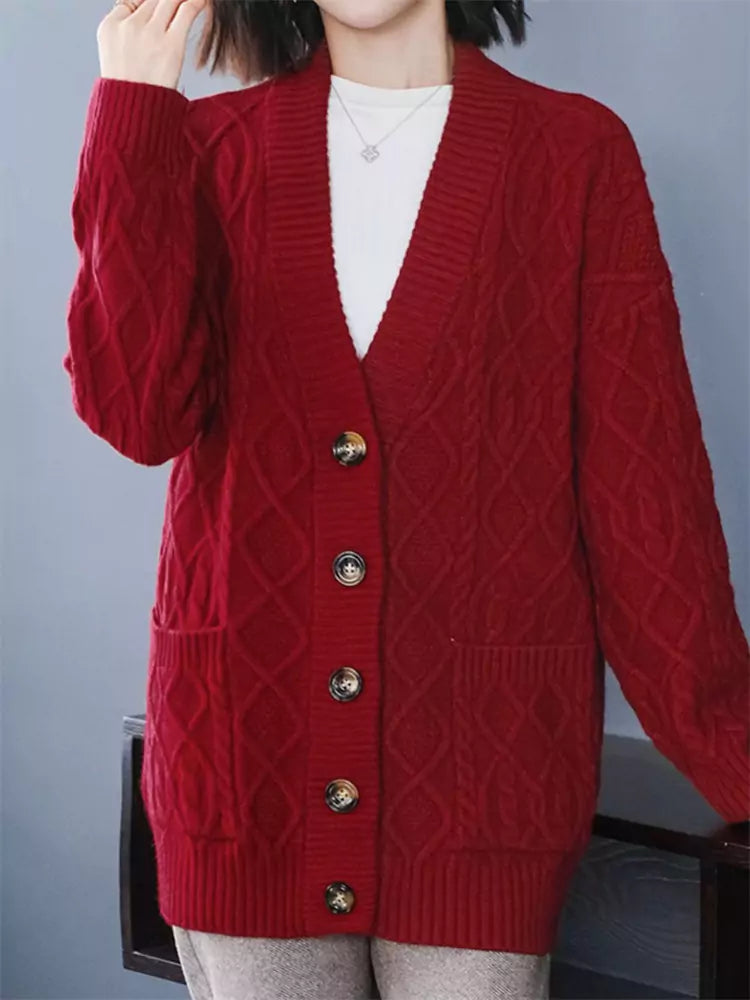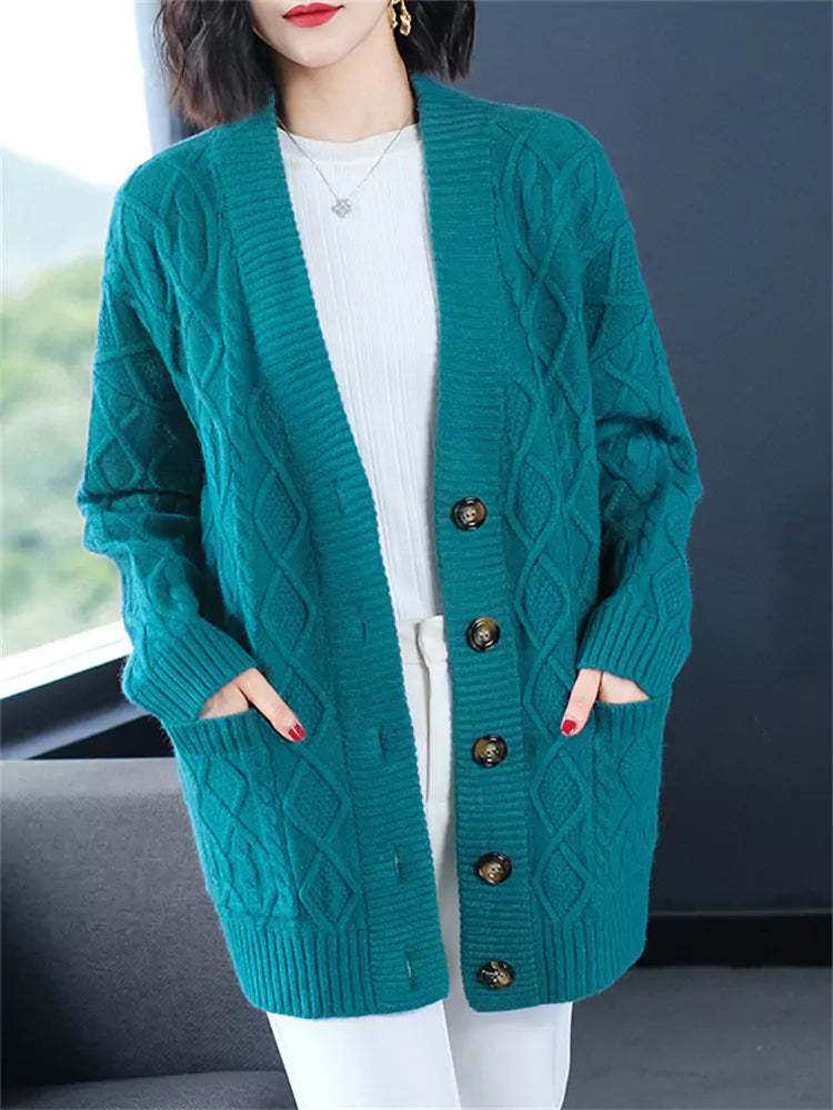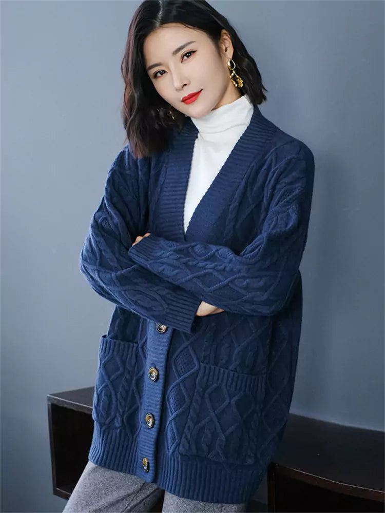 Cárdigan de punto grueso azul marino para mujer | Suéter holgado corto con cuello en V para tallas grandes. Esta prenda ofrece una calidez acogedora con un toque informal y elegante. Confeccionado en punto grueso con textura, este cárdigan presenta una silueta relajada, un favorecedor escote en V y un largo corto versátil, perfecto para combinar con tops, vestidos o camisetas. Ideal para la comodidad de las tallas grandes y un estilo chic y desenfadado en otoño e invierno. ❤️