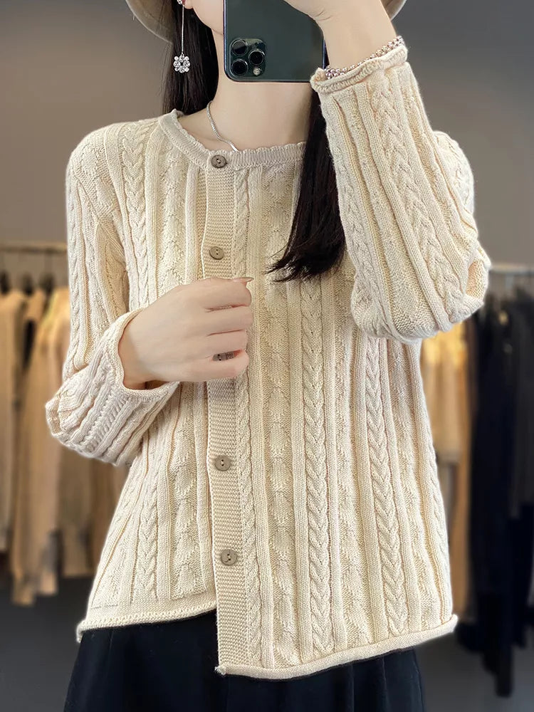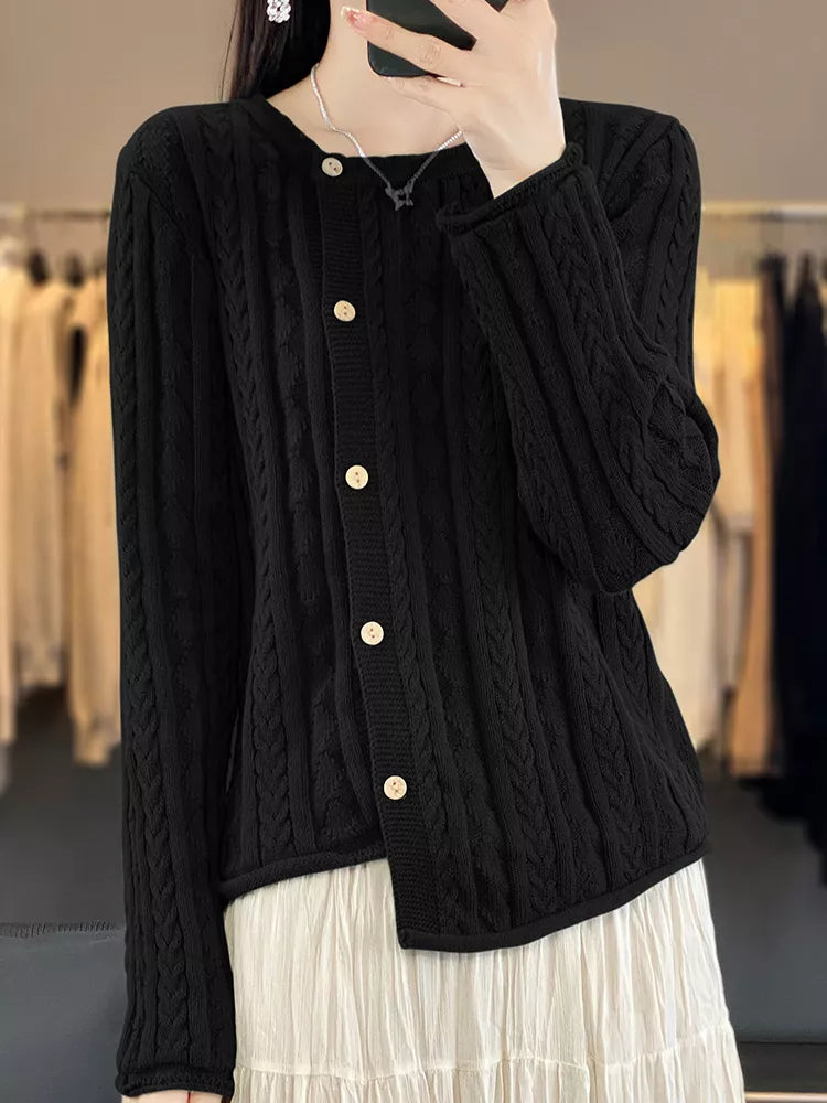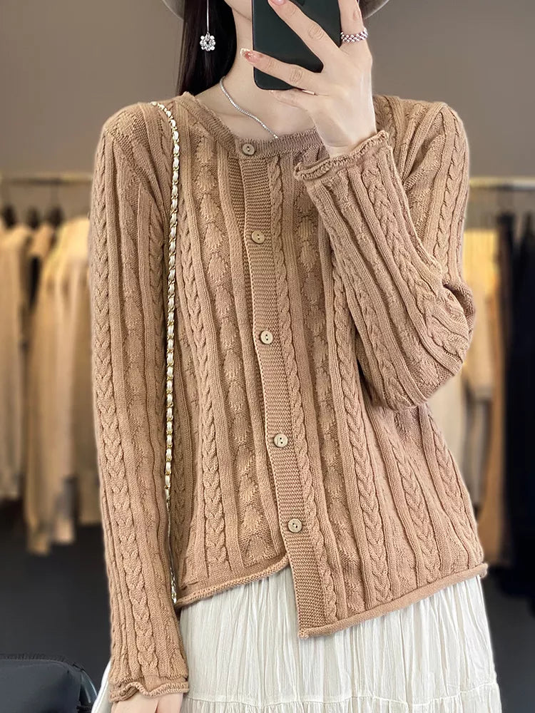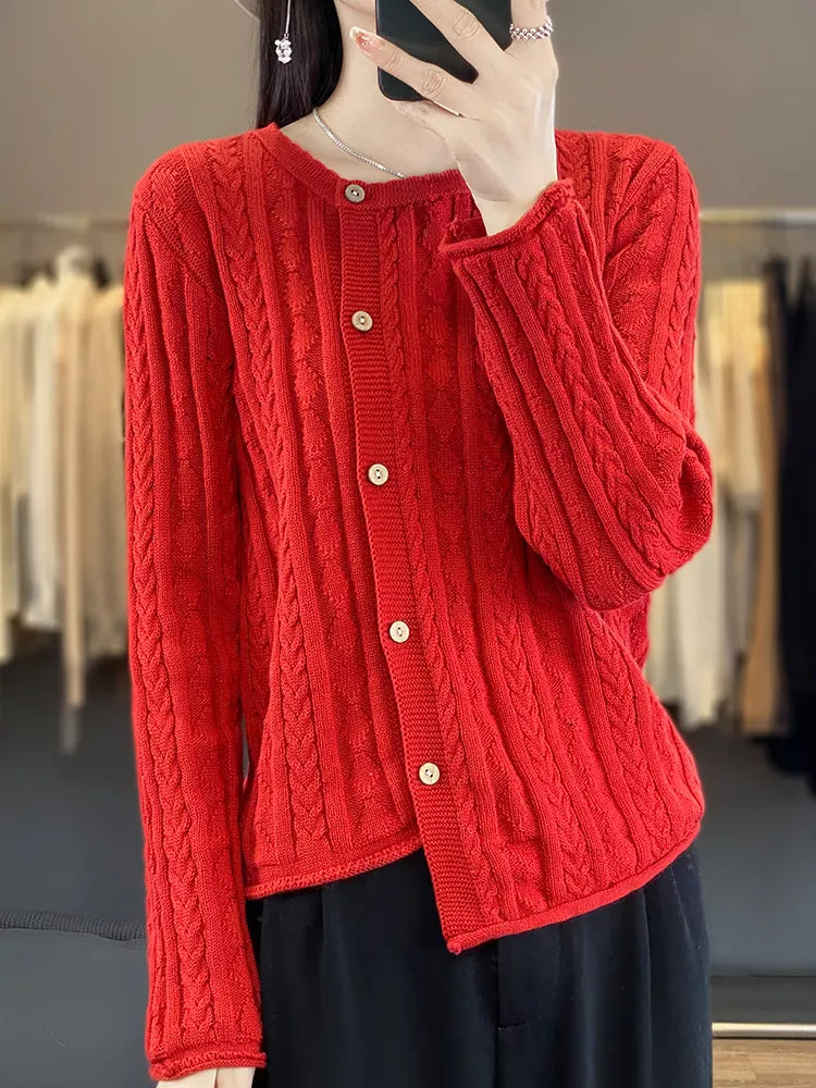Cárdigan de punto de algodón para mujer con diseño asimétrico | Suéter corto holgado con detalle de punto trenzado que combina comodidad informal con un estilo único. Confeccionado en suave hilo de algodón, este cárdigan corto presenta un corte holgado, dobladillo asimétrico y un patrón clásico de punto trenzado, perfecto para combinar con tops o vestidos. Una prenda versátil para otoño e invierno. ❤️