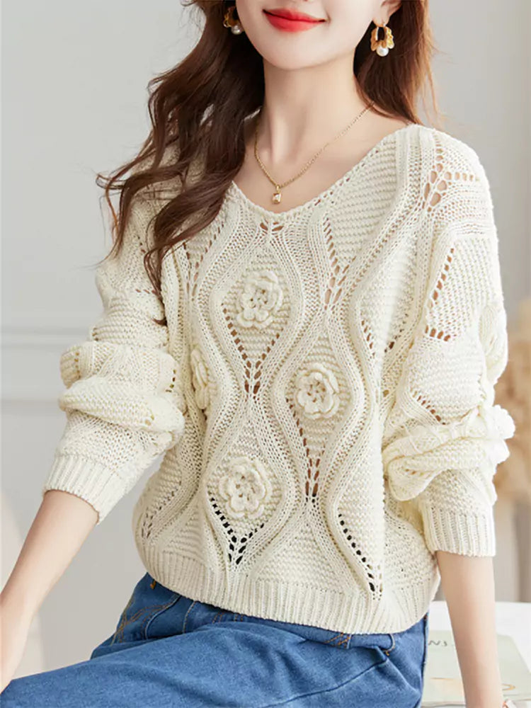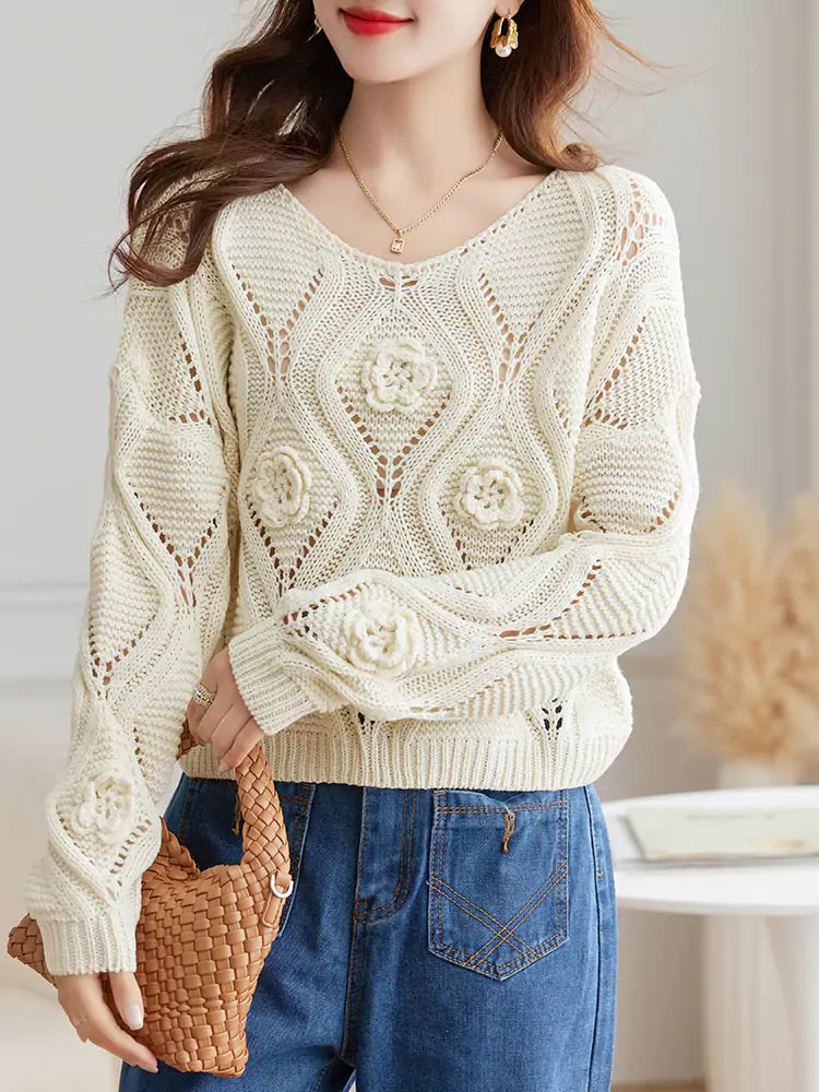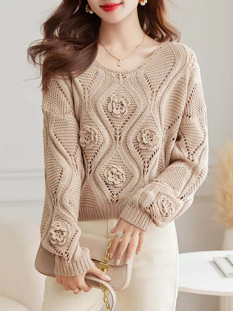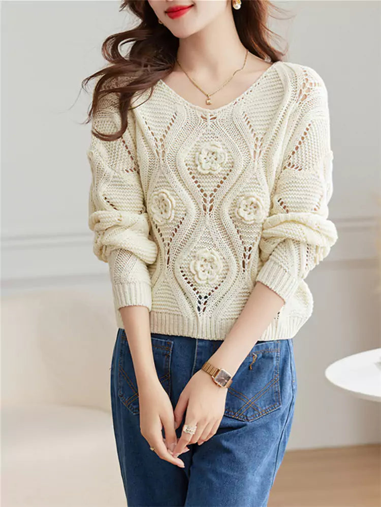 Elegante suéter corto de punto con diseño calado para mujer que aporta una feminidad refinada con un toque moderno. Su delicada textura de punto calado combina a la perfección con su silueta corta de cintura alta, lo que lo convierte en una opción versátil para usar en capas o como prenda independiente. ❤️