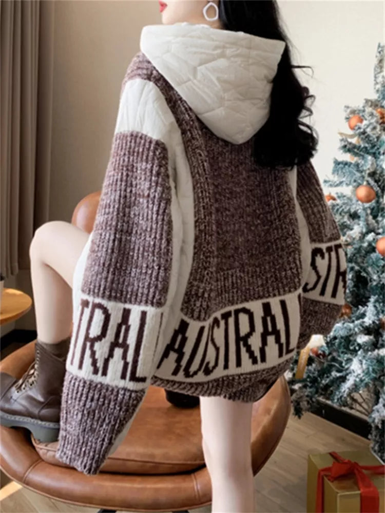 Suéter con capucha y bloques de color de gran tamaño - Jersey de calle con mangas estampadas