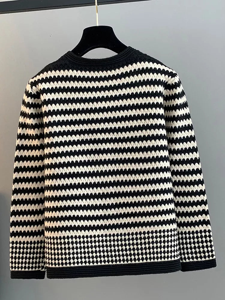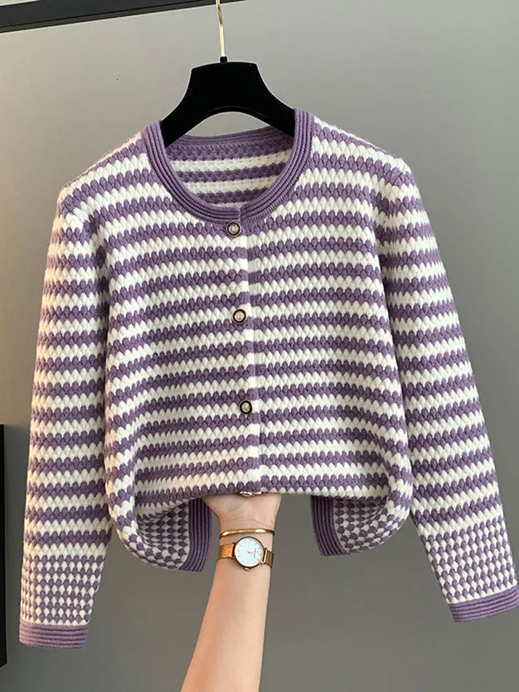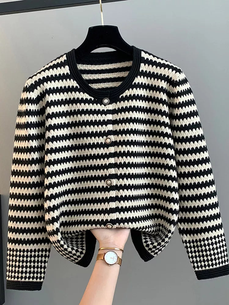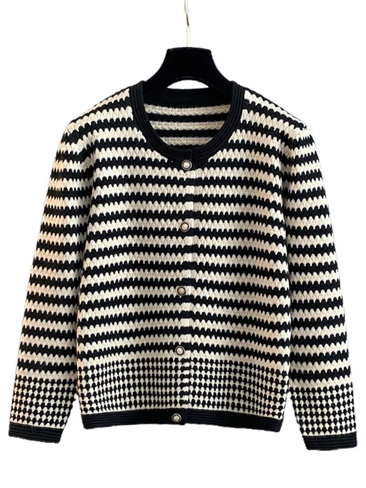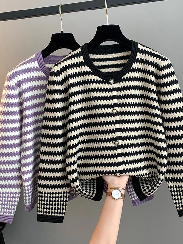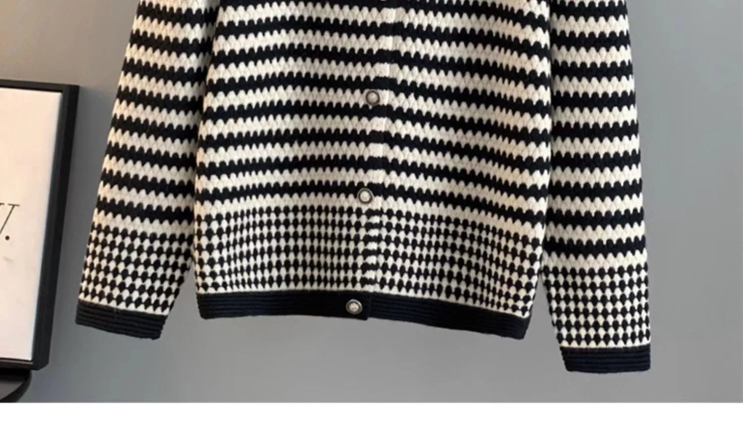 Cárdigan de punto a rayas para mujer | Estilo coreano. Esta prenda informal de punto, holgada y de corte holgado combina un encanto acogedor con un estilo chic y desenfadado. Con una silueta relajada y un clásico estampado de rayas, este cárdigan de punto suave ofrece comodidad y versatilidad. Perfecto para combinar con camisetas o vestidos, le da un toque informal y elegante a tus looks diarios. ❤️