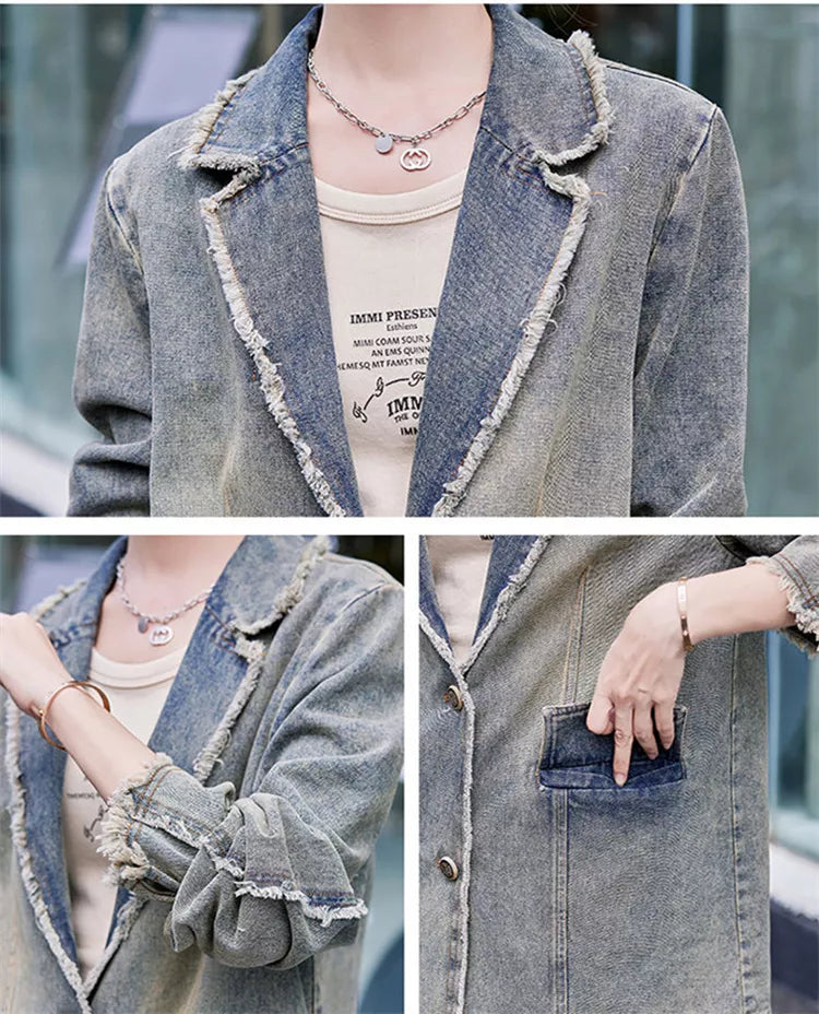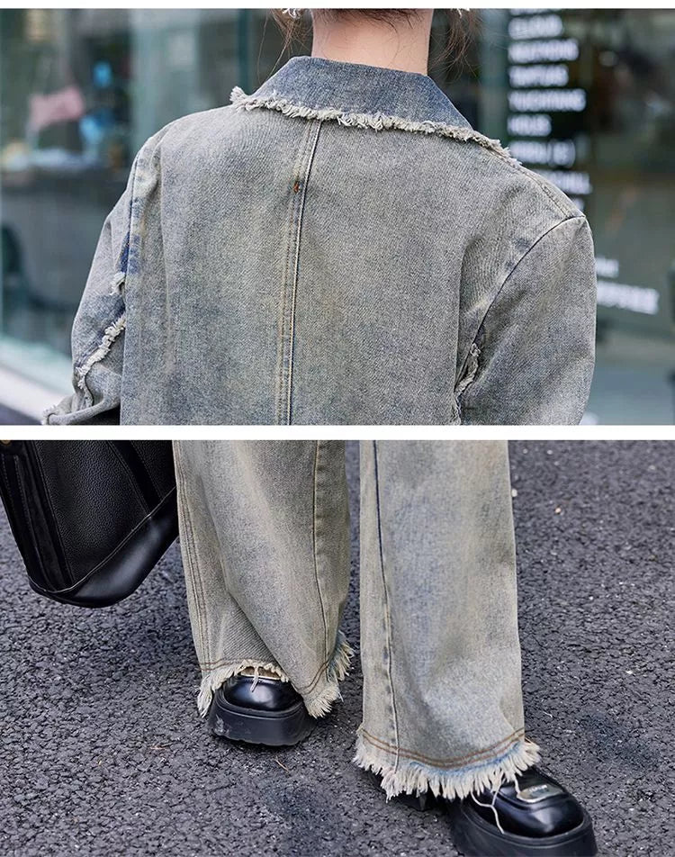Conjunto de blazer vaquero vintage y pantalón ancho para mujer | Elegante conjunto casual de dos piezas con chaqueta y pantalón holgados que combina una sastrería refinada con el encanto relajado del denim. El blazer estructurado presenta un diseño clásico de solapa, mientras que los pantalones anchos de cintura alta alargan la silueta para un look moderno y atemporal. Perfecto para días informales, ropa de calle o ocasiones semiformales. ❤️