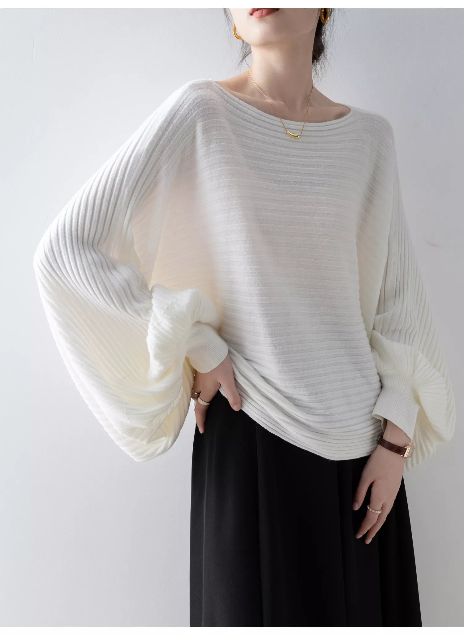 Suéter de punto blanco con hombros descubiertos para mujer | Elegante jersey con mangas murciélago para usar a capas y a diario, que aporta feminidad natural y un encanto moderno. Diseñado con un suave escote con hombros descubiertos y mangas murciélago relajadas, realza la clavícula con un ajuste cómodo y favorecedor. Perfecto para usar en capas o en solitario, este versátil jersey combina a la perfección con cualquier salida informal o noche elegante. ❤️