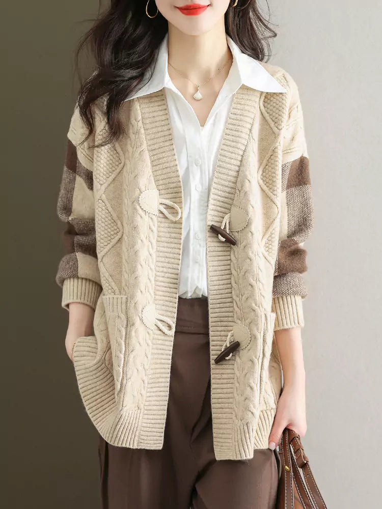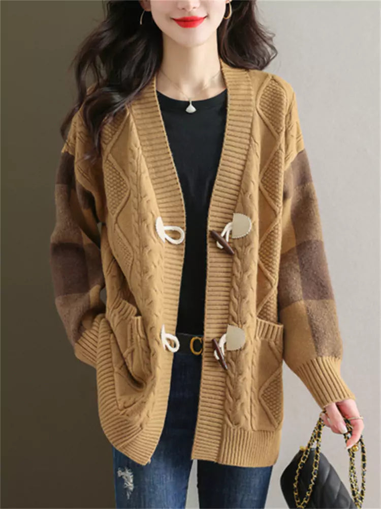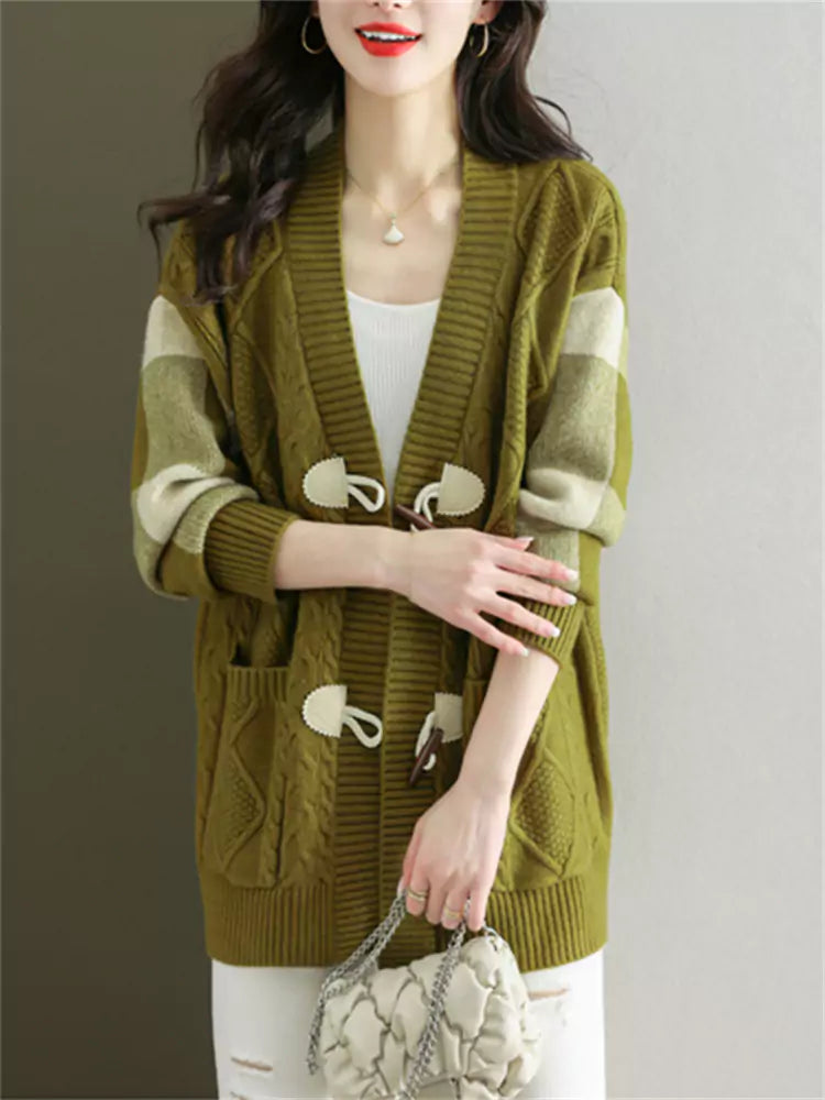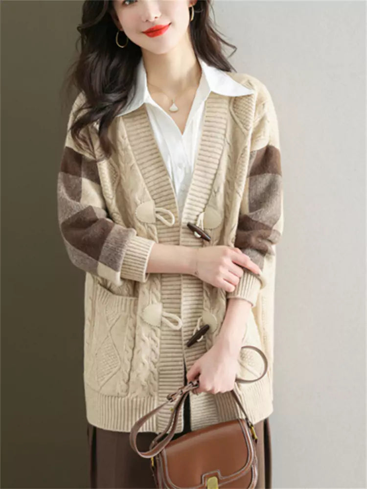 Cárdigan de punto trenzado de largo medio para mujer | Este abrigo holgado de otoño-invierno combina una calidez acogedora con un estilo versátil. Diseñado con un corte de largo medio y un tejido de punto suave, este cárdigan ofrece una silueta relajada, ideal para combinar con tops o vestidos. Ideal para salidas informales, ropa de oficina o para combinar con otras prendas en otoño-invierno, aporta una elegancia natural a cualquier armario. ❤️