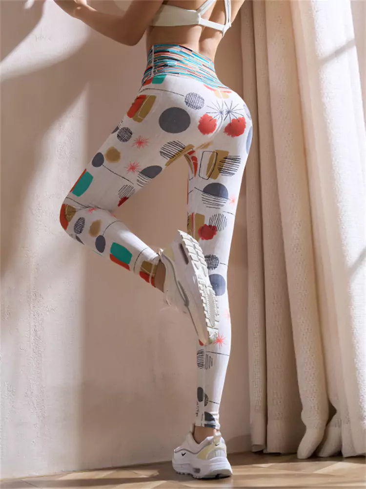 Colorful Printed Stripe High Waist Quick-Dry Seamless Yoga Pants for Women