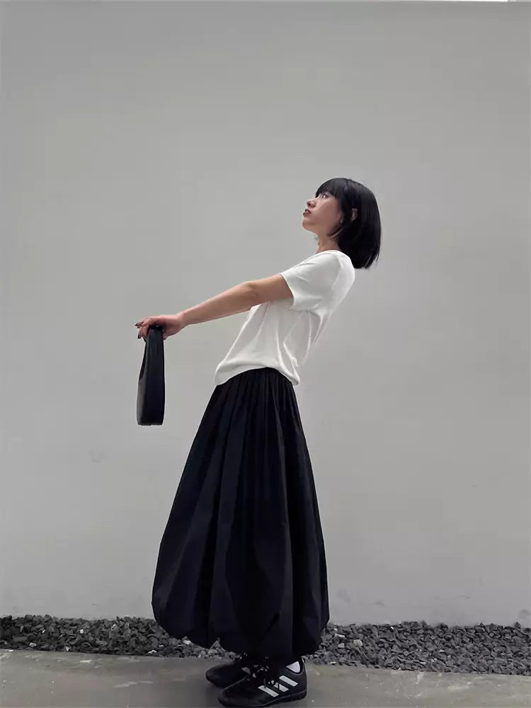 Japanese Style Black Pleated Puff A-Line Midi Skirt for Women adds an artistic touch to your wardrobe with its voluminous silhouette and soft architectural folds. Designed with a flattering A-line shape, delicate pleats, and a subtle balloon-like structure, this skirt balances playfulness and elegance—perfect for spring and summer days when you want to stand out with effortless charm. ❤️