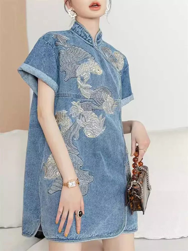 This denim cheongsam is sustainably produced with attention to comfort, durability, and style—perfect for fashion lovers who appreciate tradition with a modern edge.