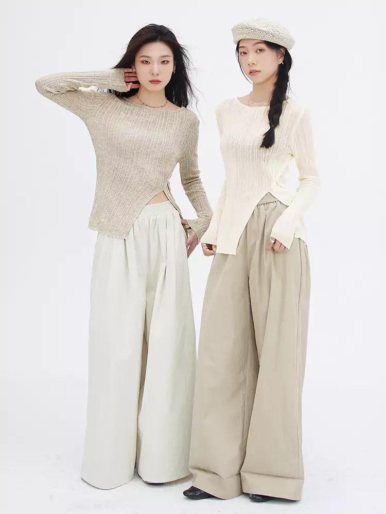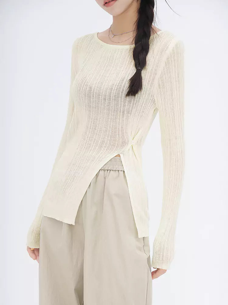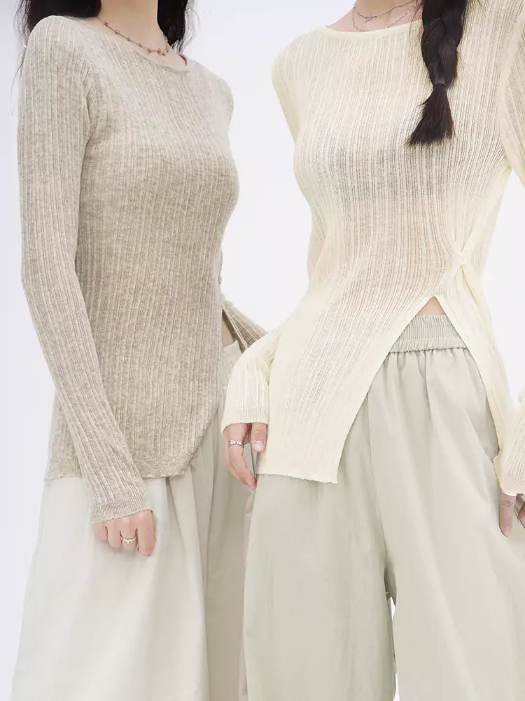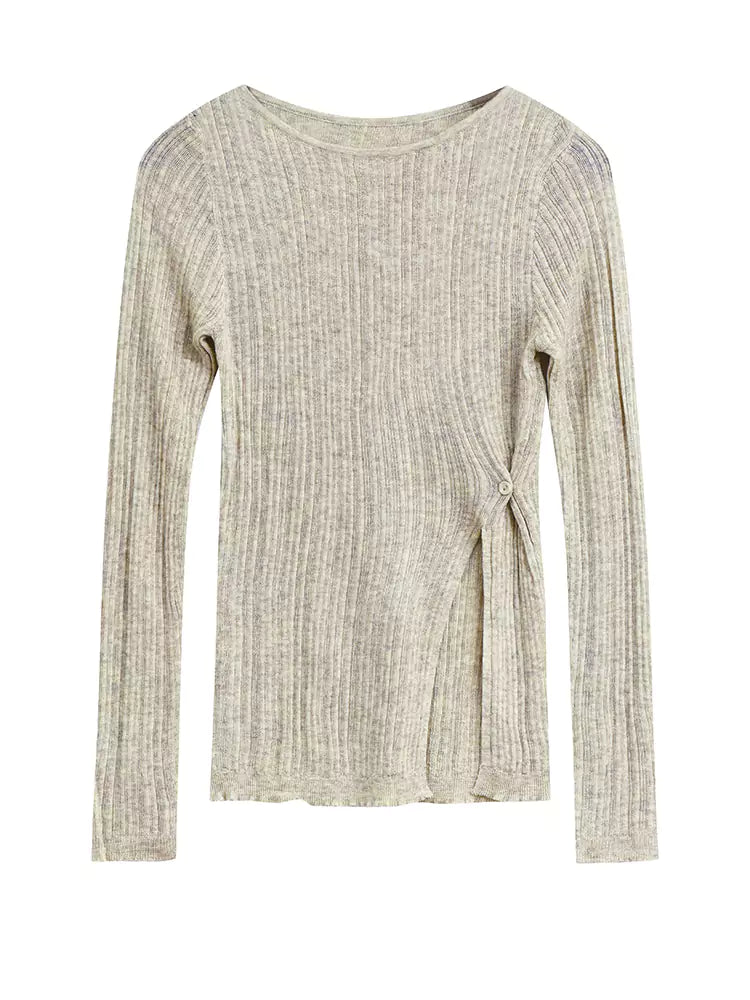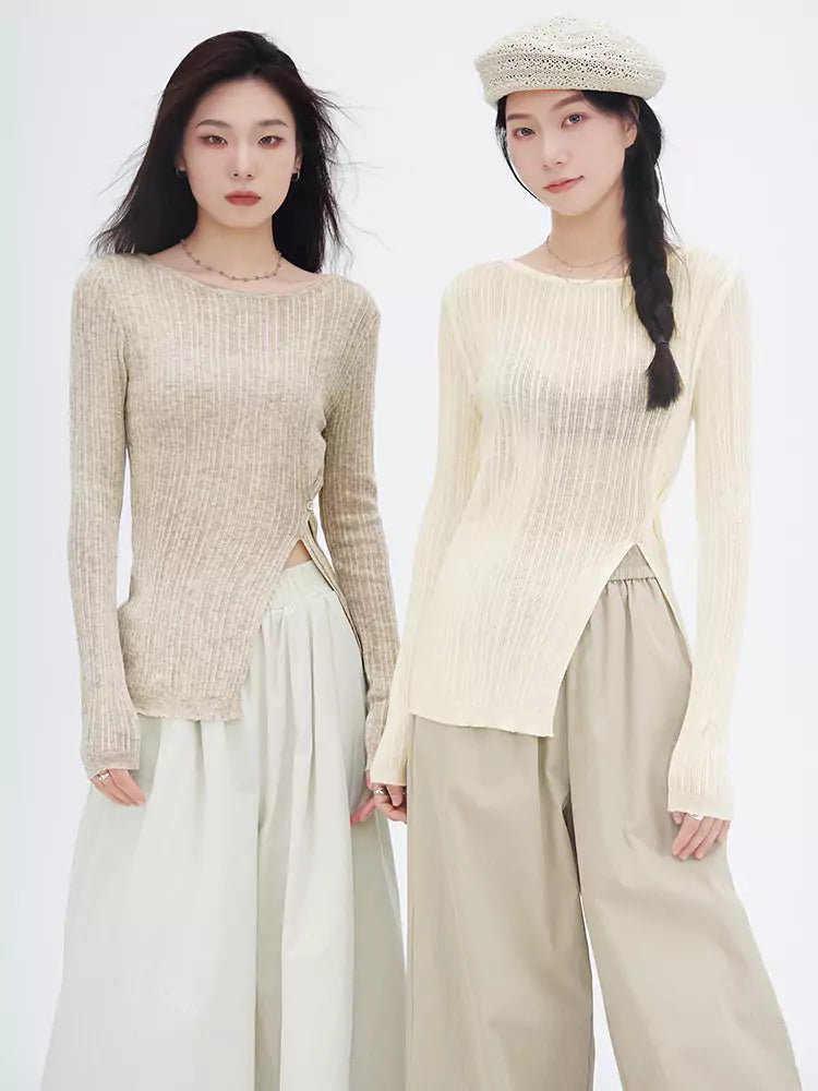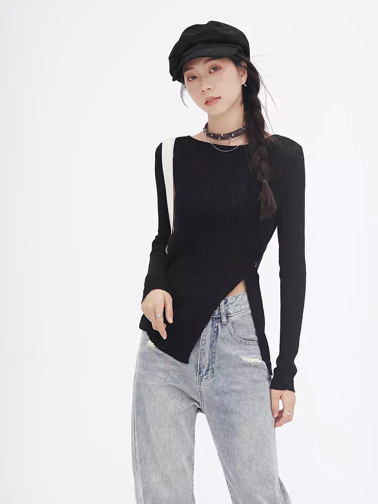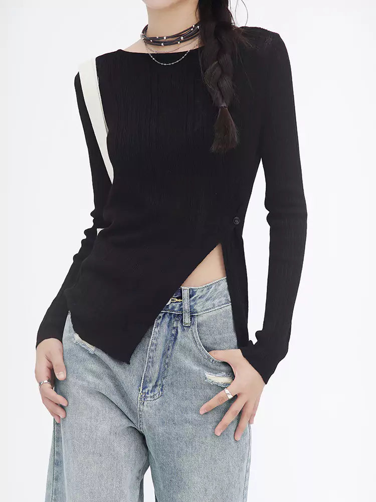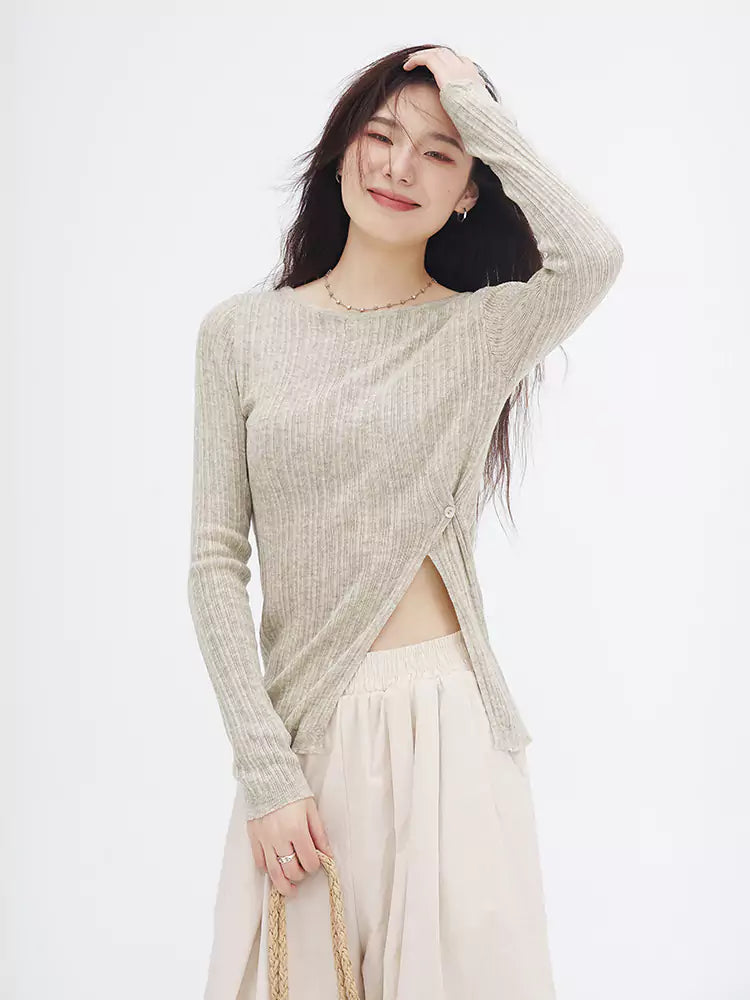 Soft Side Slit Knit Sweater with Diagonal Button-Front